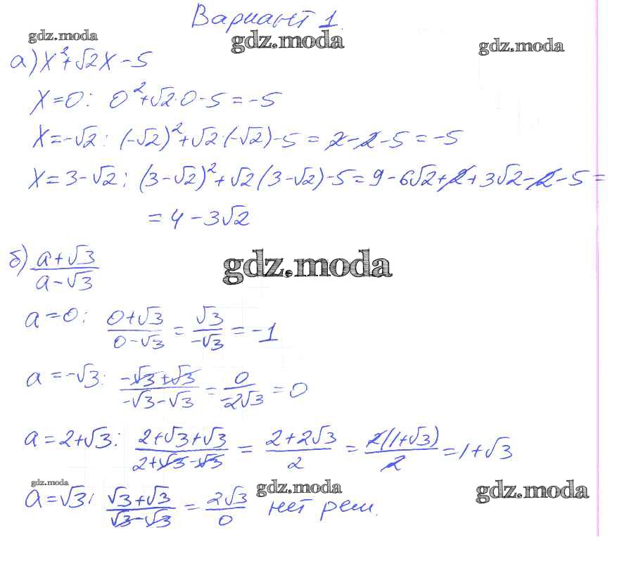 ГДЗ решение к заданию № Вариант 1 Алгебра 8 класс Дидактические материалы Евстафьева Л.П. Просвещение 2017 ФГОС бесплатно на гдз.мода!