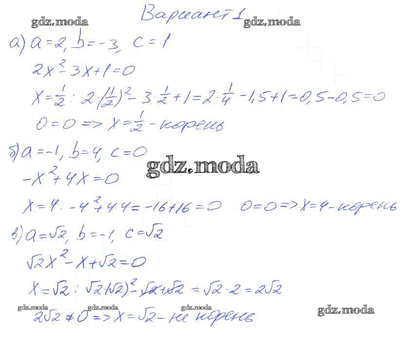 ГДЗ решение к заданию № Вариант 1 Алгебра 8 класс Дидактические материалы Евстафьева Л.П. Просвещение 2017 ФГОС бесплатно на гдз.мода!