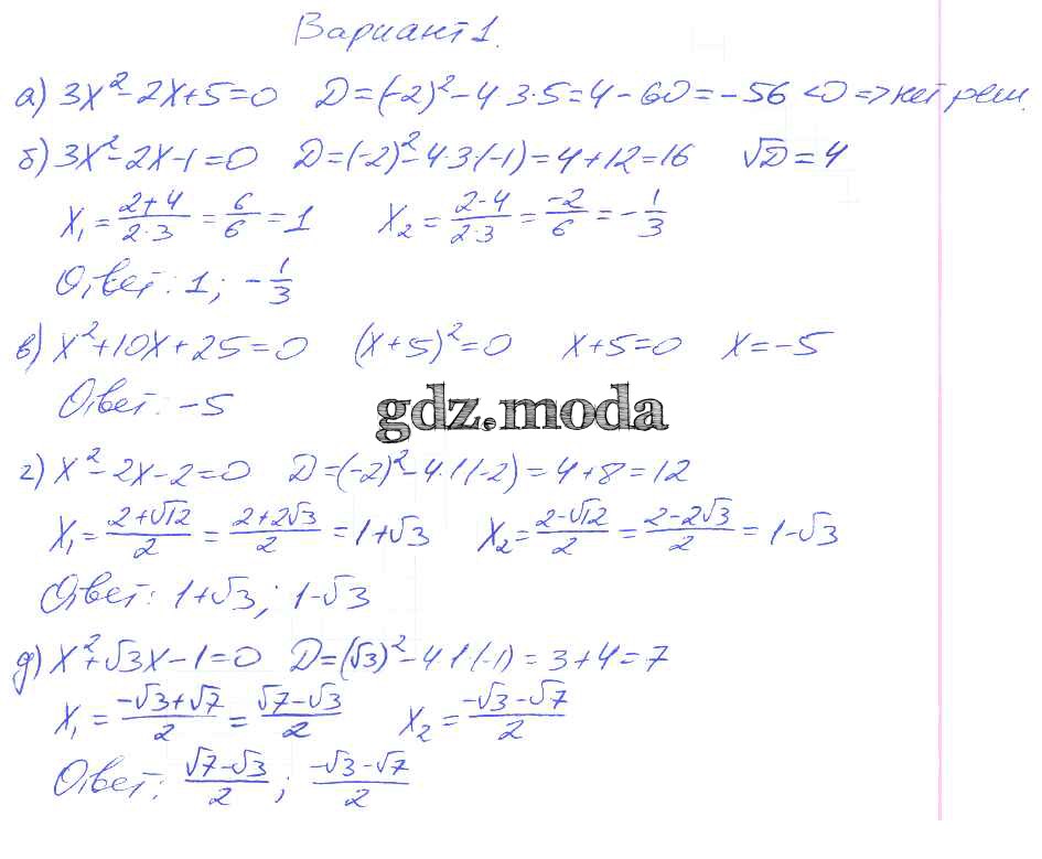 ГДЗ решение к заданию № Вариант 1 Алгебра 8 класс Дидактические материалы Евстафьева Л.П. Просвещение 2017 ФГОС бесплатно на гдз.мода!