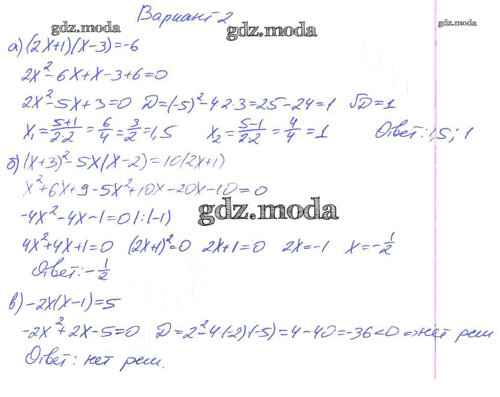 ОТВЕТ на задание № Вариант 2 Дидактические материалы по Алгебре 8 класс Евстафьева