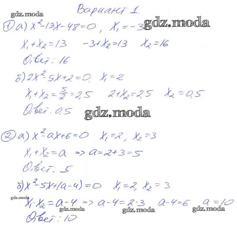 ГДЗ решение к заданию № Вариант 1 Алгебра 8 класс Дидактические материалы Евстафьева Л.П. Просвещение 2017 ФГОС бесплатно на гдз.мода!