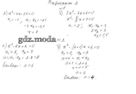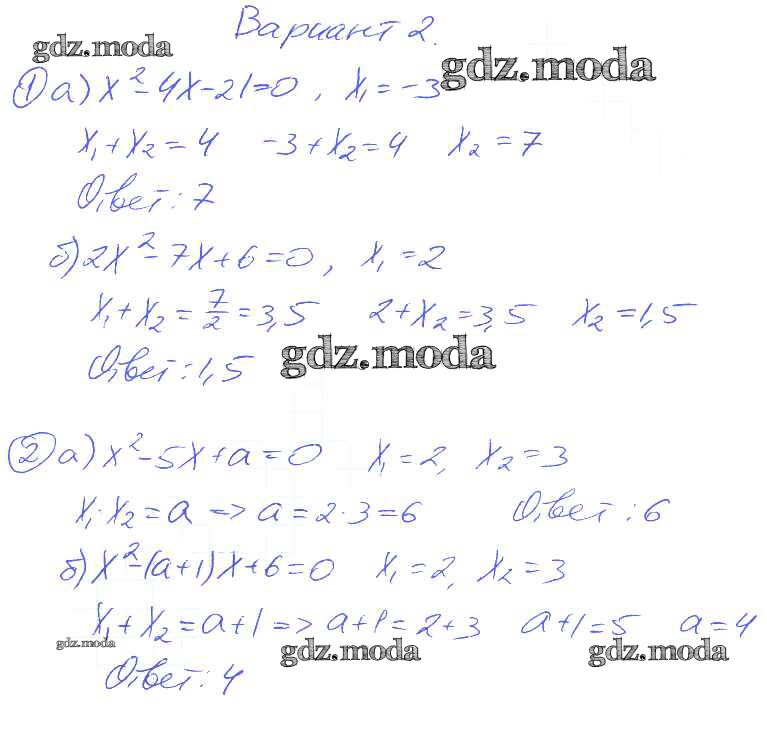 ГДЗ решение к заданию № Вариант 2 Алгебра 8 класс Дидактические материалы Евстафьева Л.П. Просвещение 2017 ФГОС бесплатно на гдз.мода!