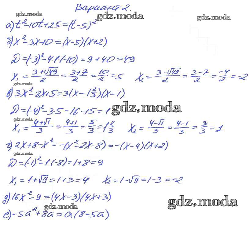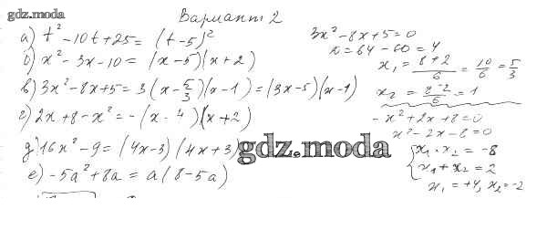 ГДЗ решение к заданию № Вариант 2 Алгебра 8 класс Дидактические материалы Евстафьева Л.П. Просвещение 2017 ФГОС бесплатно на гдз.мода!