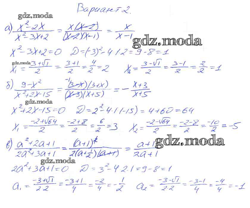 ГДЗ решение к заданию № Вариант 2 Алгебра 8 класс Дидактические материалы Евстафьева Л.П. Просвещение 2017 ФГОС бесплатно на гдз.мода!