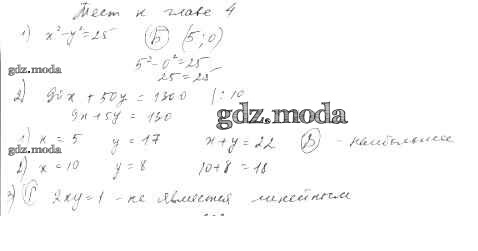 ОТВЕТ на задание № тест к главе 4 Учебник по Алгебре 8 класс Дорофеев