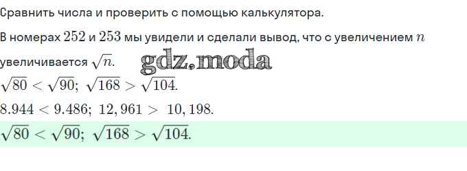 ОТВЕТ на задание № 254 Учебник по Алгебре 8 класс Дорофеев