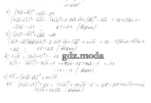 ОТВЕТ на задание № 415 Учебник по Алгебре 8 класс Дорофеев