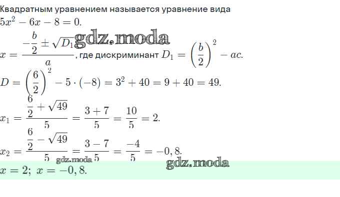 ОТВЕТ на задание № 449 Учебник по Алгебре 8 класс Дорофеев