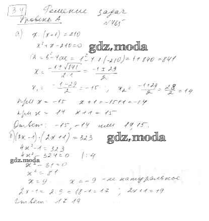 ОТВЕТ на задание № 465 Учебник по Алгебре 8 класс Дорофеев