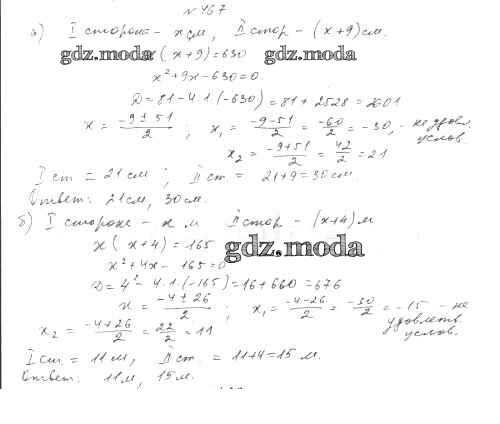 ОТВЕТ на задание № 467 Учебник по Алгебре 8 класс Дорофеев