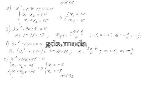 ОТВЕТ на задание № 531 Учебник по Алгебре 8 класс Дорофеев