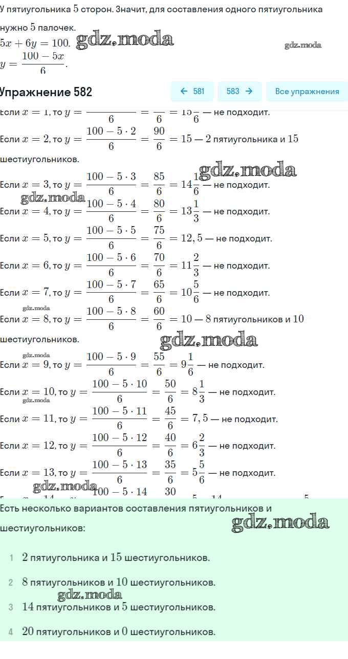 ОТВЕТ на задание № 582 Учебник по Алгебре 8 класс Дорофеев