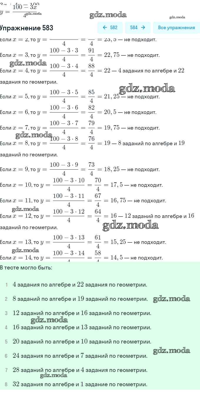 ОТВЕТ на задание № 583 Учебник по Алгебре 8 класс Дорофеев