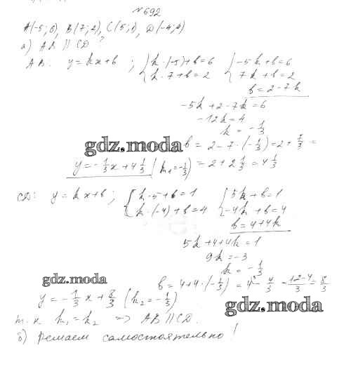 ОТВЕТ на задание № 692 Учебник по Алгебре 8 класс Дорофеев