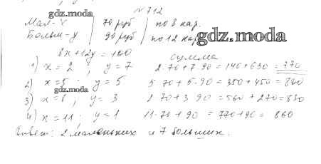 ОТВЕТ на задание № 712 Учебник по Алгебре 8 класс Дорофеев