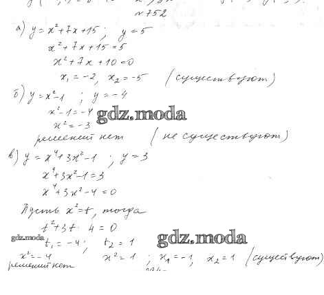 ОТВЕТ на задание № 752 Учебник по Алгебре 8 класс Дорофеев