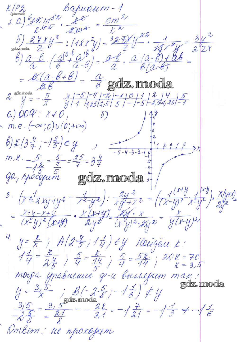 ГДЗ решение к заданию № 1 Алгебра 8 класс контрольные работы Дудницын Ю.П. Экзамен 2010 ФГОС бесплатно на гдз.мода!