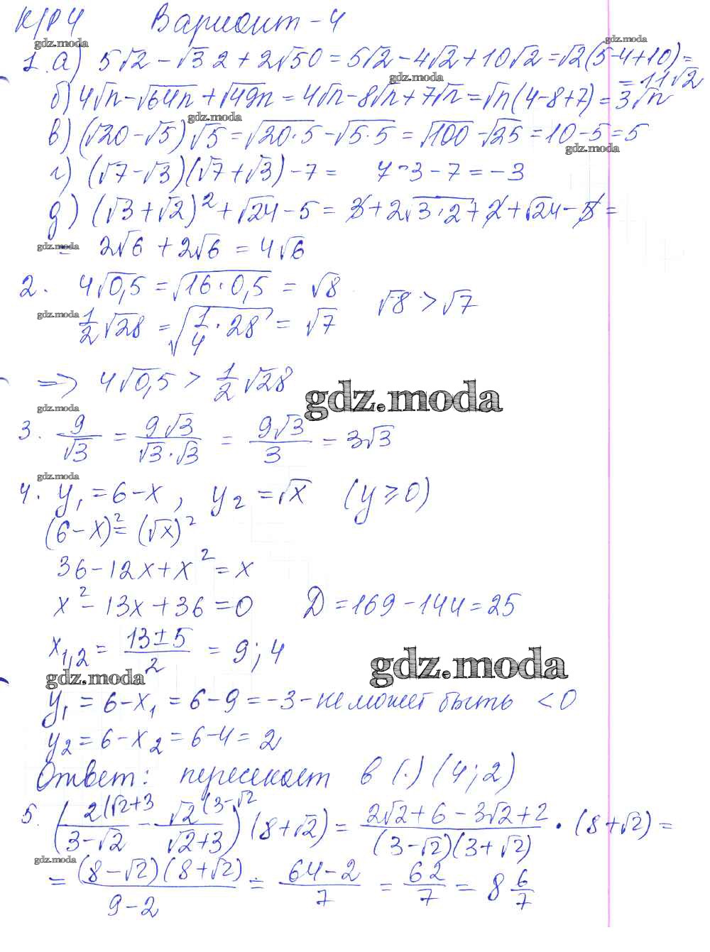 ГДЗ решение к заданию № 4 Алгебра 8 класс контрольные работы Дудницын Ю.П. Экзамен 2010 ФГОС бесплатно на гдз.мода!