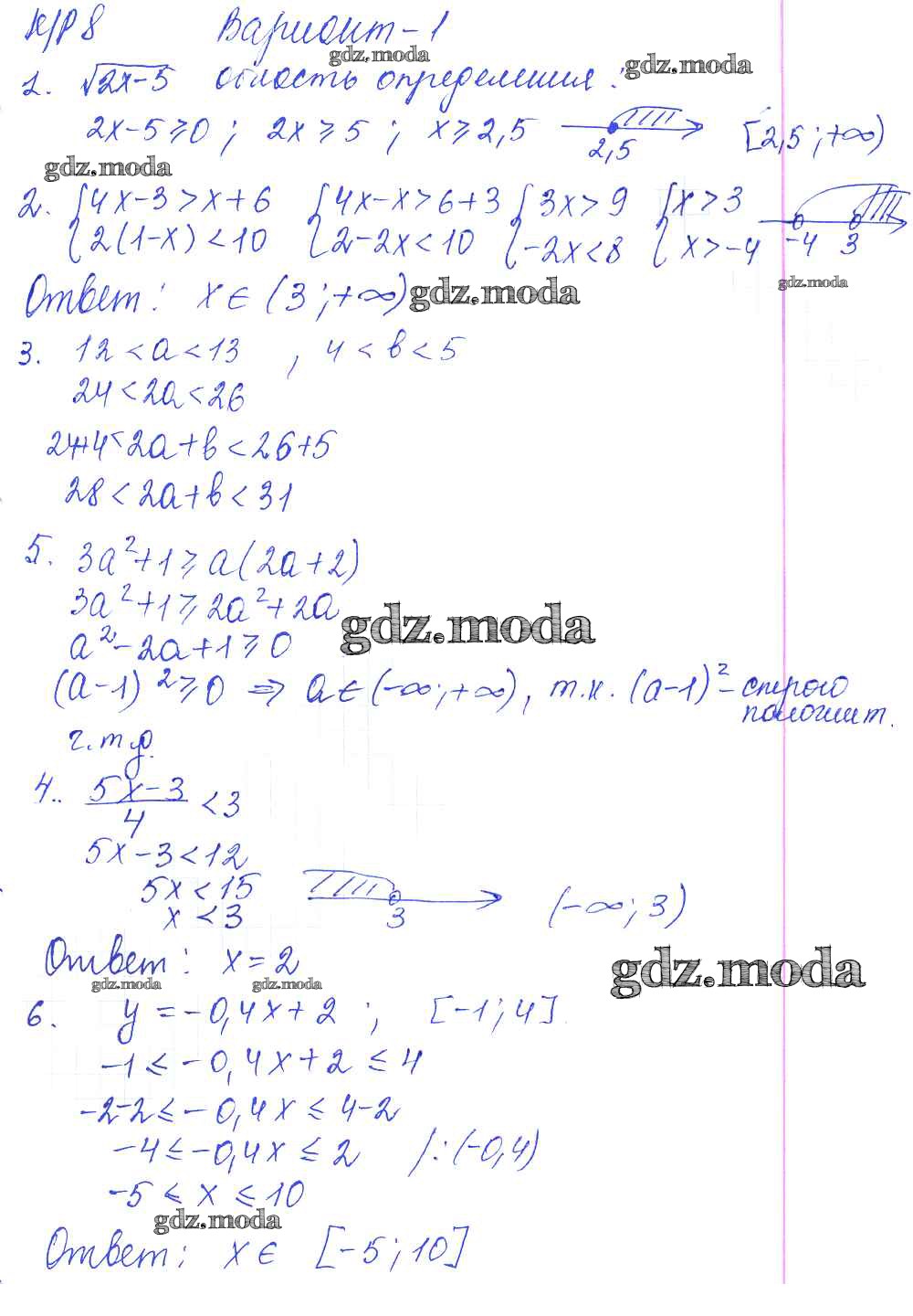 ГДЗ решение к заданию № 1 Алгебра 8 класс контрольные работы Дудницын Ю.П. Экзамен 2010 ФГОС бесплатно на гдз.мода!