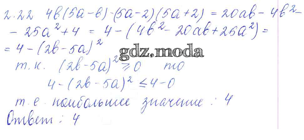 ГДЗ решение к заданию № 2.22 Алгебра 8 класс Сборник задач Галицкий М.Л. Просвещение 2019 ФГОС бесплатно на гдз.мода!