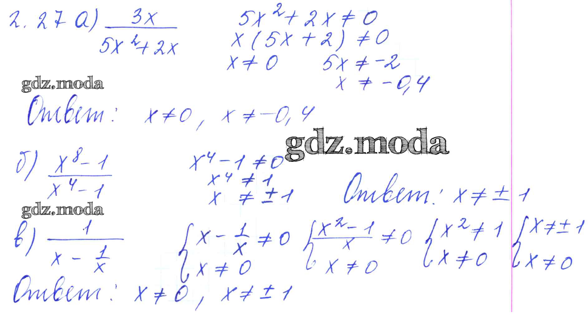 ОТВЕТ на задание № 2.27 Сборник задач по Алгебре 8 класс Галицкий