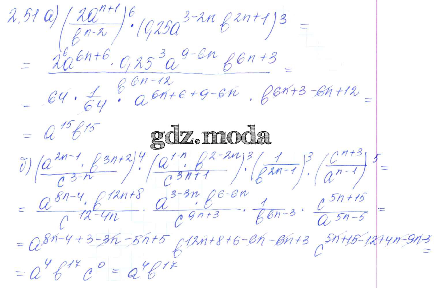 ОТВЕТ на задание № 2.51 Сборник задач по Алгебре 8 класс Галицкий