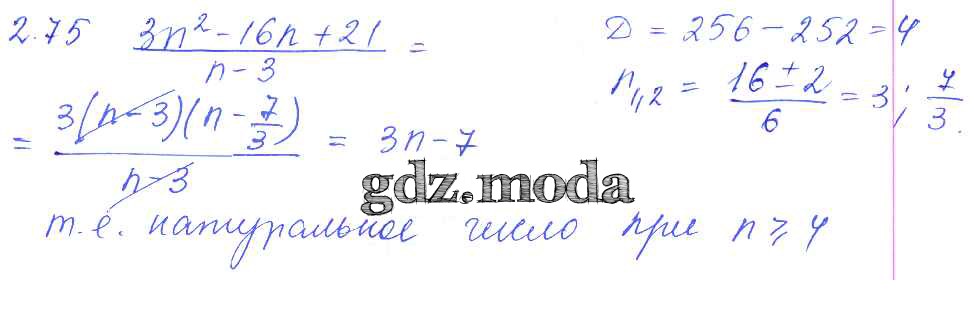 ОТВЕТ на задание № 2.75 Сборник задач по Алгебре 8 класс Галицкий
