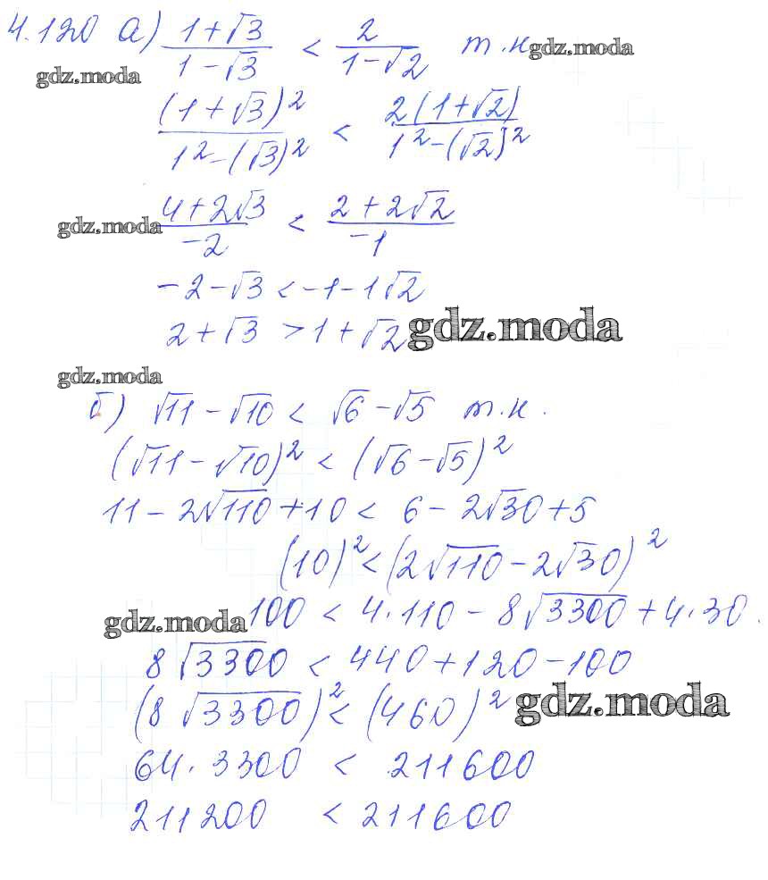 ГДЗ решение к заданию № 4.120 Алгебра 8 класс Сборник задач Галицкий М.Л. Просвещение 2019 ФГОС бесплатно на гдз.мода!