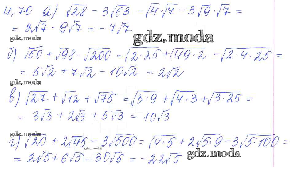 ОТВЕТ на задание № 4.70 Сборник задач по Алгебре 8 класс Галицкий
