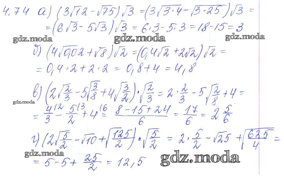 ОТВЕТ на задание № 4.74 Сборник задач по Алгебре 8 класс Галицкий