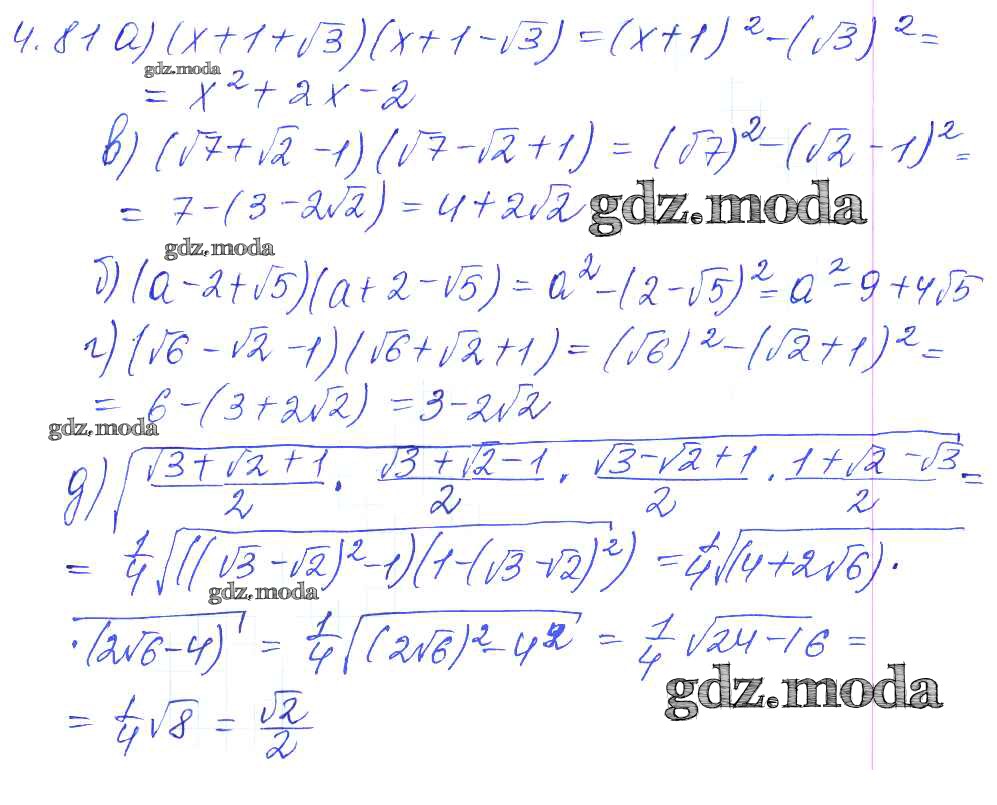 ГДЗ решение к заданию № 4.81 Алгебра 8 класс Сборник задач Галицкий М.Л. Просвещение 2019 ФГОС бесплатно на гдз.мода!