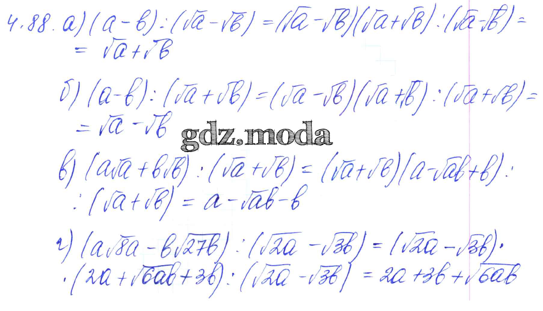ОТВЕТ на задание № 4.88 Сборник задач по Алгебре 8 класс Галицкий