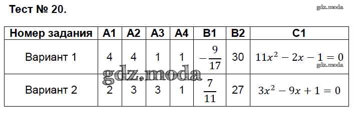 ГДЗ решение к заданию № 20 Алгебра 8 класс КИМ Черноруцкий В.В. ВАКО 2018 ФГОС бесплатно на гдз.мода!