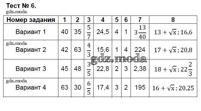 ОТВЕТ на задание № 6 Контрольно-измерительные материалы (КИМ) по Алгебре 8 класс Глазков