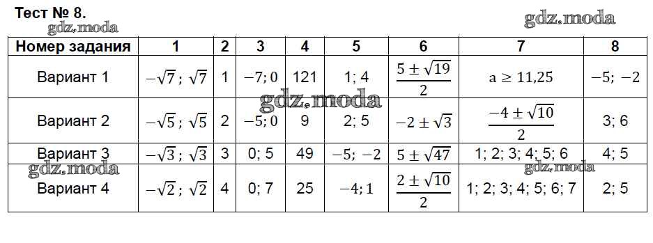 ОТВЕТ на задание № 8 Контрольно-измерительные материалы (КИМ) по Алгебре 8 класс Глазков