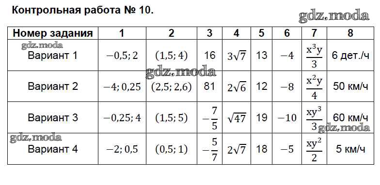 ОТВЕТ на задание № 10 Контрольно-измерительные материалы (КИМ) по Алгебре 8 класс Глазков