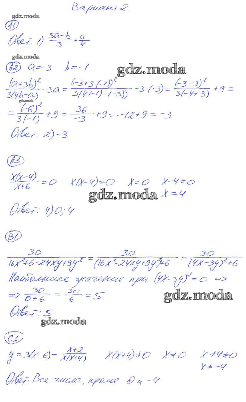 ГДЗ решение к заданию № 2 Алгебра 8 класс самостоятельные и контрольные работы Глазков Ю.А. (к уч. Макарычева) Экзамен 2012 ФГОС бесплатно на гдз.мода!