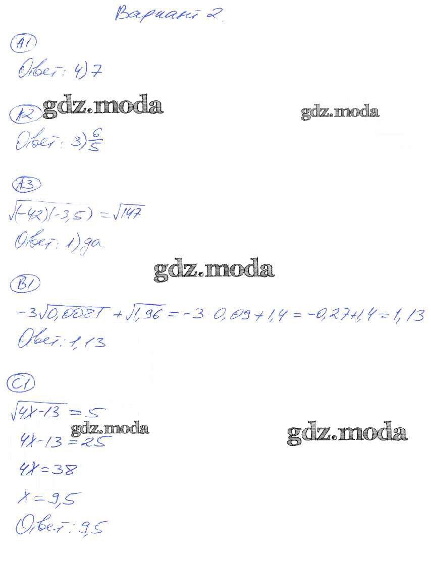 ГДЗ решение к заданию № 2 Алгебра 8 класс самостоятельные и контрольные работы Глазков Ю.А. (к уч. Макарычева) Экзамен 2012 ФГОС бесплатно на гдз.мода!