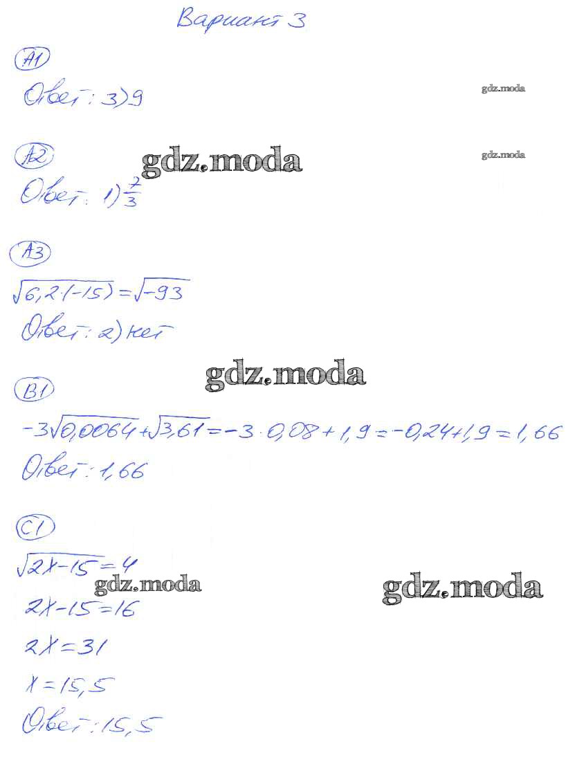 ГДЗ решение к заданию № 3 Алгебра 8 класс самостоятельные и контрольные работы Глазков Ю.А. (к уч. Макарычева) Экзамен 2012 ФГОС бесплатно на гдз.мода!
