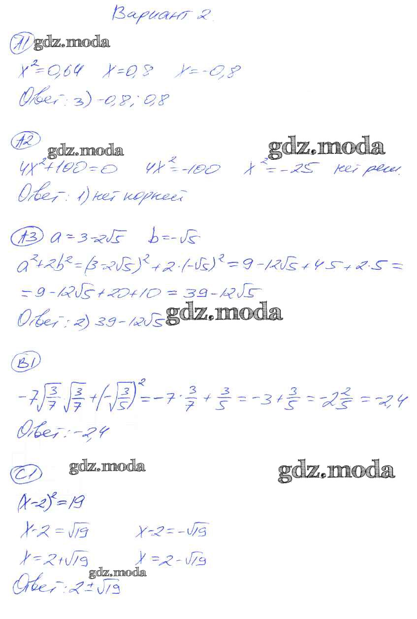 ГДЗ решение к заданию № 2 Алгебра 8 класс самостоятельные и контрольные работы Глазков Ю.А. (к уч. Макарычева) Экзамен 2012 ФГОС бесплатно на гдз.мода!