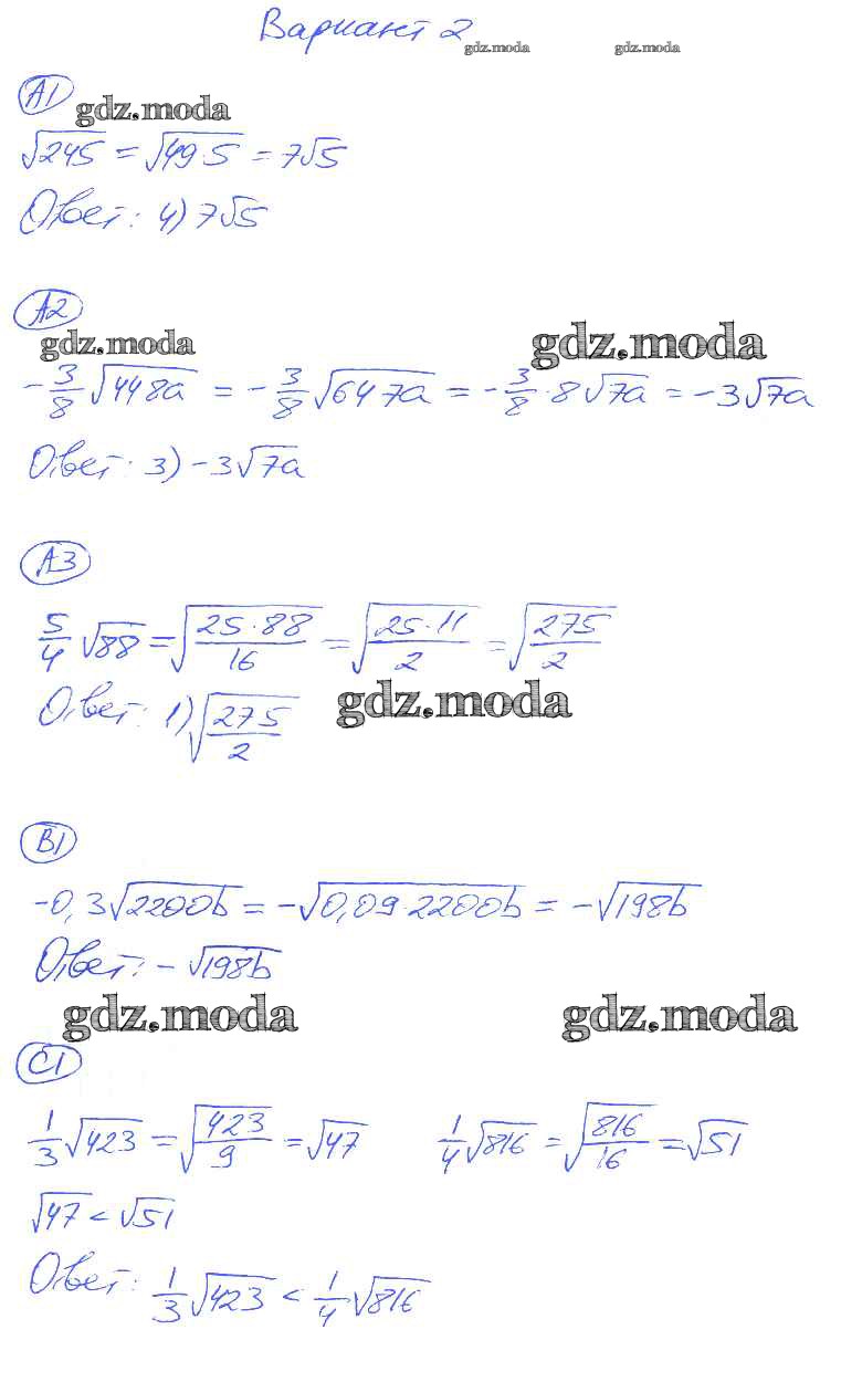 ГДЗ решение к заданию № 2 Алгебра 8 класс самостоятельные и контрольные работы Глазков Ю.А. (к уч. Макарычева) Экзамен 2012 ФГОС бесплатно на гдз.мода!