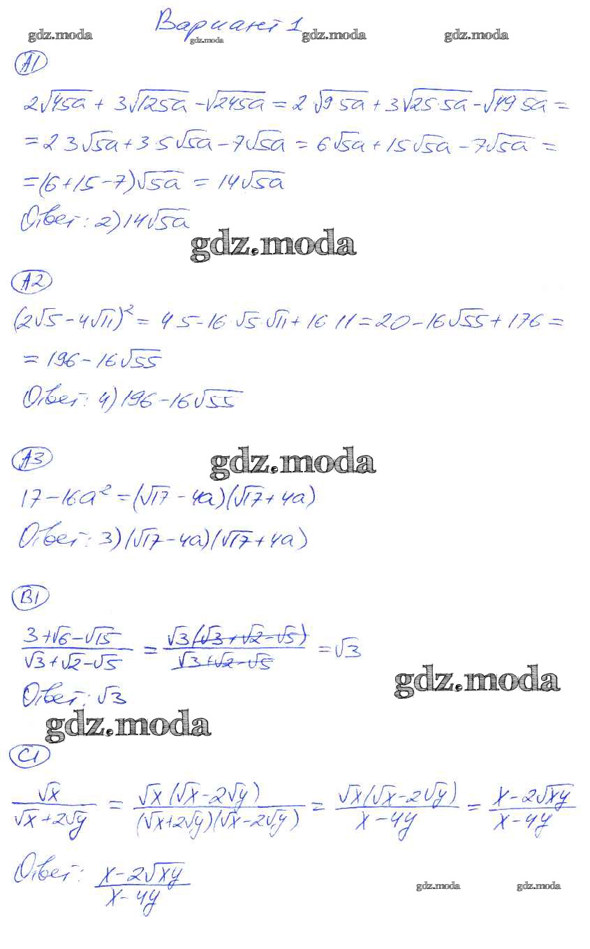 ГДЗ решение к заданию № 1 Алгебра 8 класс самостоятельные и контрольные работы Глазков Ю.А. (к уч. Макарычева) Экзамен 2012 ФГОС бесплатно на гдз.мода!
