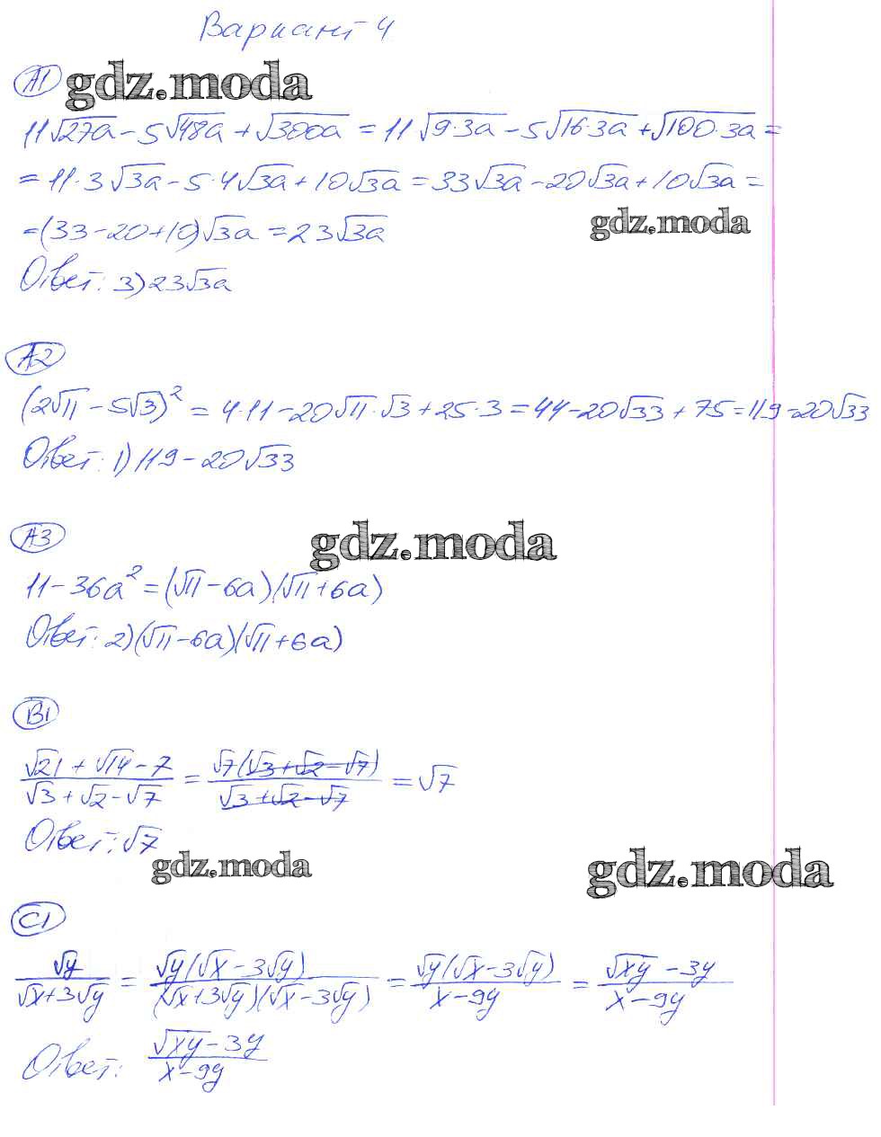 ГДЗ решение к заданию № 4 Алгебра 8 класс самостоятельные и контрольные работы Глазков Ю.А. (к уч. Макарычева) Экзамен 2012 ФГОС бесплатно на гдз.мода!