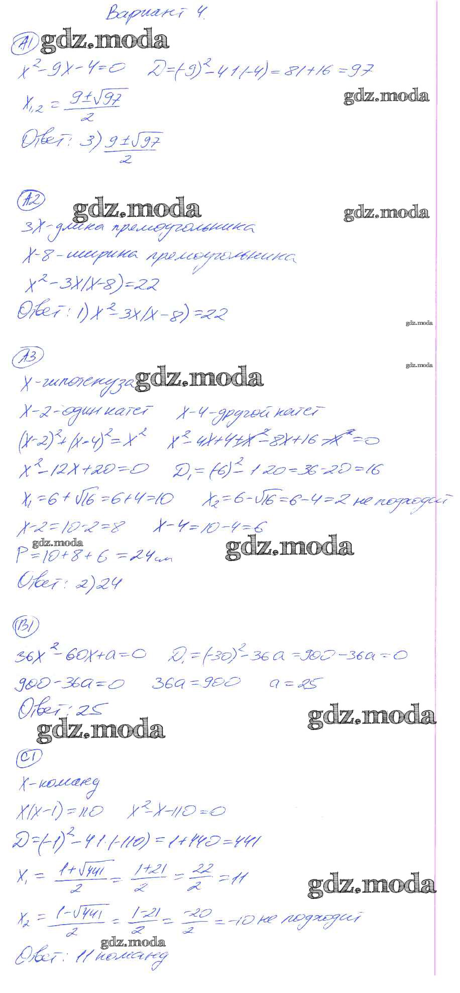 ГДЗ решение к заданию № 4 Алгебра 8 класс самостоятельные и контрольные работы Глазков Ю.А. (к уч. Макарычева) Экзамен 2012 ФГОС бесплатно на гдз.мода!