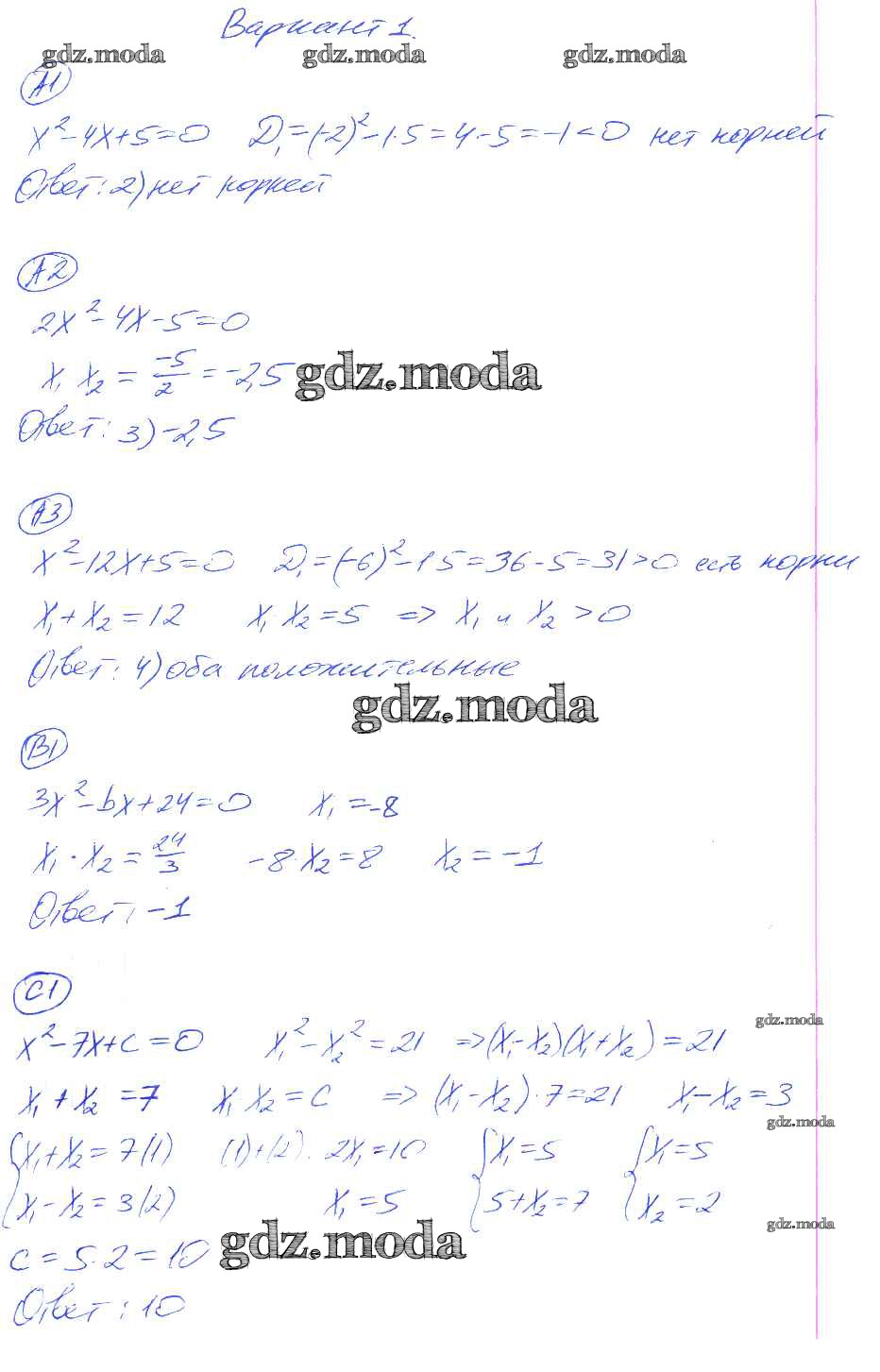 ГДЗ решение к заданию № 1 Алгебра 8 класс самостоятельные и контрольные работы Глазков Ю.А. (к уч. Макарычева) Экзамен 2012 ФГОС бесплатно на гдз.мода!