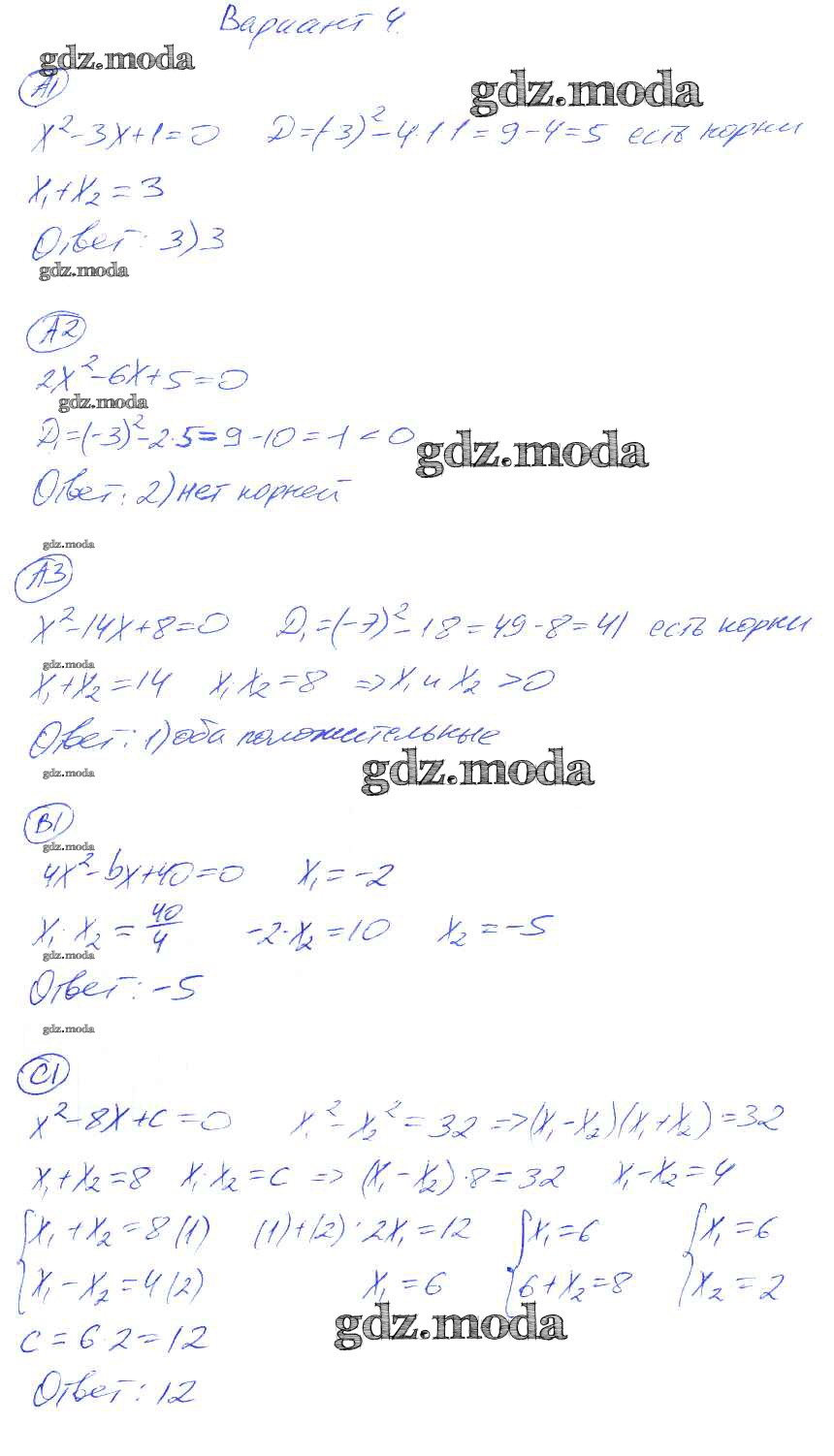 ГДЗ решение к заданию № 4 Алгебра 8 класс самостоятельные и контрольные работы Глазков Ю.А. (к уч. Макарычева) Экзамен 2012 ФГОС бесплатно на гдз.мода!