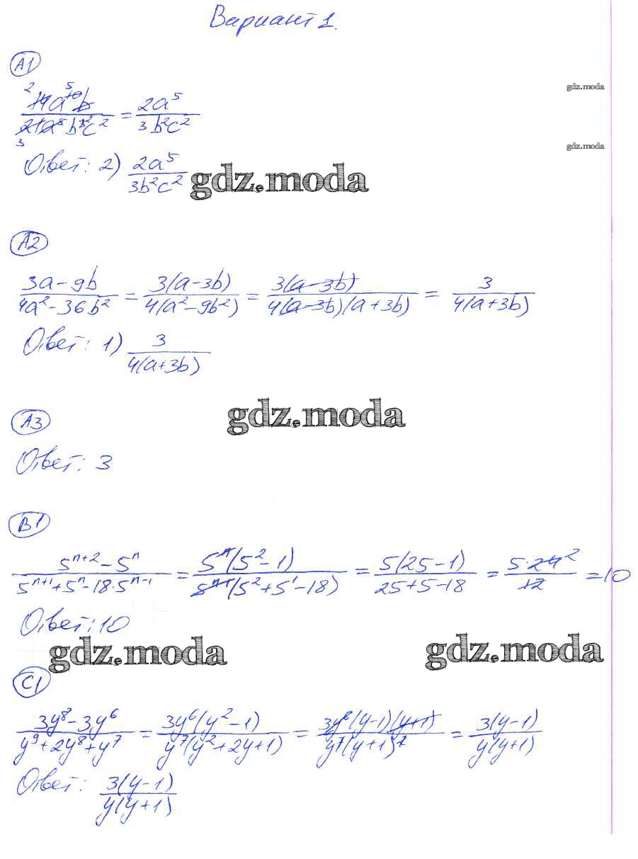 ГДЗ решение к заданию № 1 Алгебра 8 класс самостоятельные и контрольные работы Глазков Ю.А. (к уч. Макарычева) Экзамен 2012 ФГОС бесплатно на гдз.мода!
