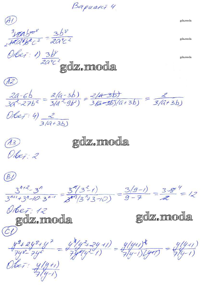 ГДЗ решение к заданию № 4 Алгебра 8 класс самостоятельные и контрольные работы Глазков Ю.А. (к уч. Макарычева) Экзамен 2012 ФГОС бесплатно на гдз.мода!