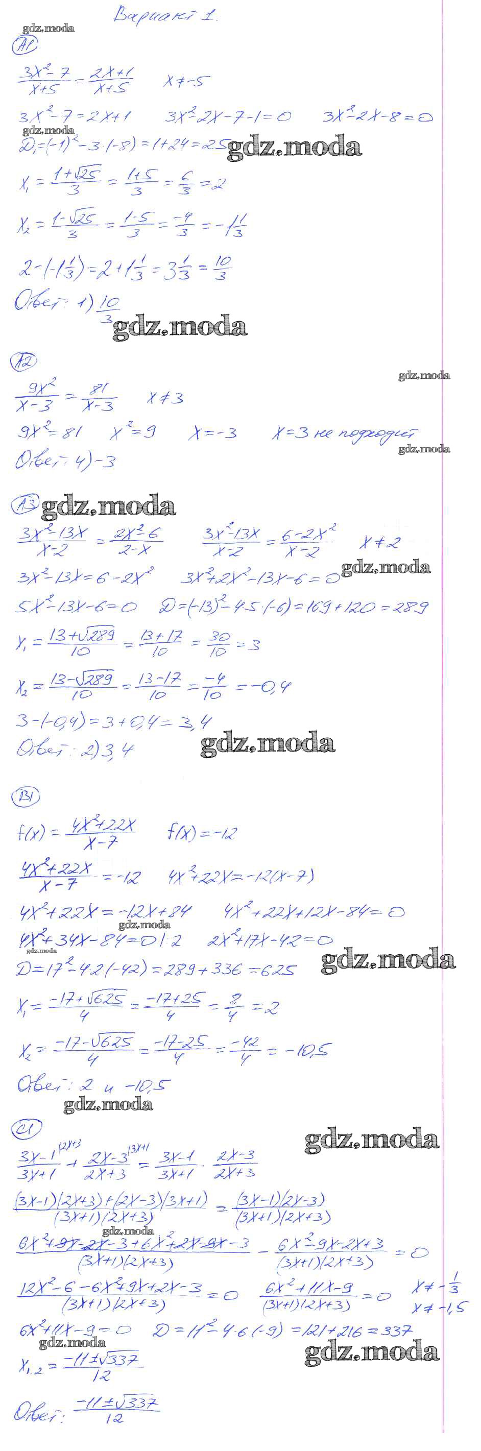 ГДЗ решение к заданию № 1 Алгебра 8 класс самостоятельные и контрольные работы Глазков Ю.А. (к уч. Макарычева) Экзамен 2012 ФГОС бесплатно на гдз.мода!