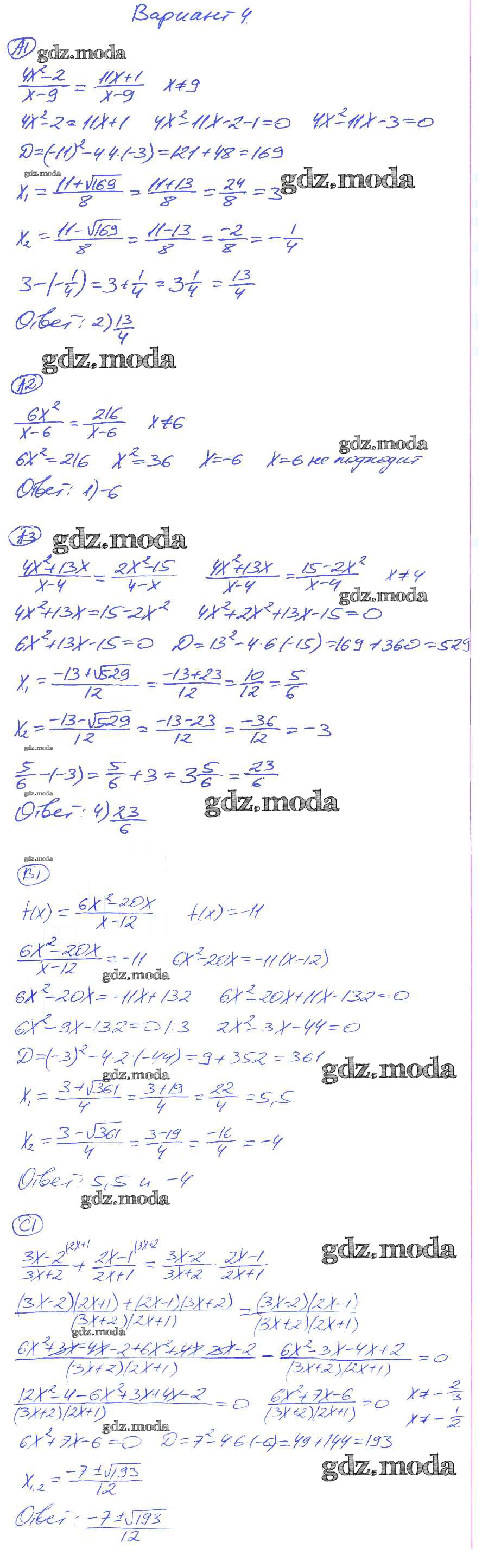 ГДЗ решение к заданию № 4 Алгебра 8 класс самостоятельные и контрольные работы Глазков Ю.А. (к уч. Макарычева) Экзамен 2012 ФГОС бесплатно на гдз.мода!